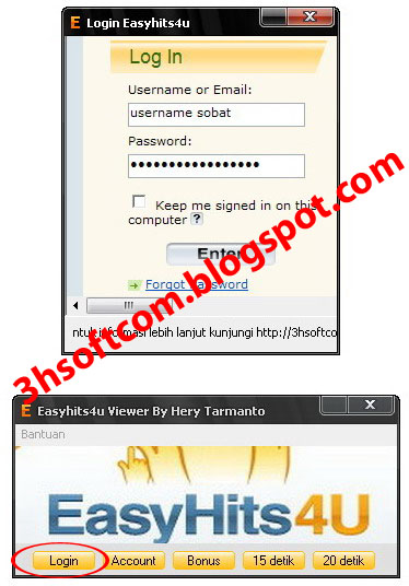 4. Langkah pertama yang harus sobat lakukan adalah dengan login ke account Easyhits4u sobat. Caranya tinggal klik tombol Login. Maka menu login akan muncul. Masukkan username dan password sobat.